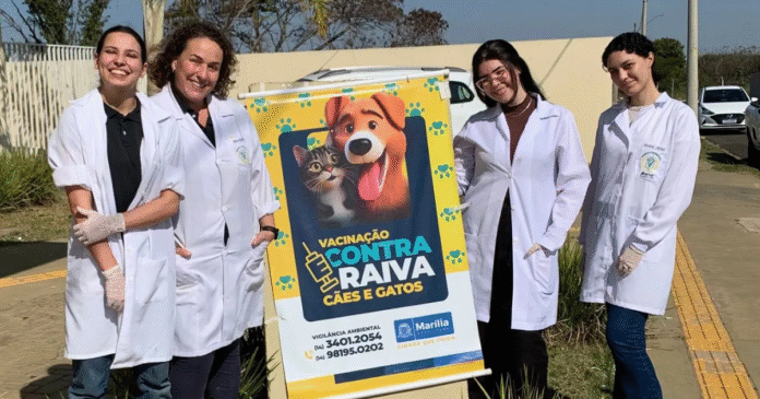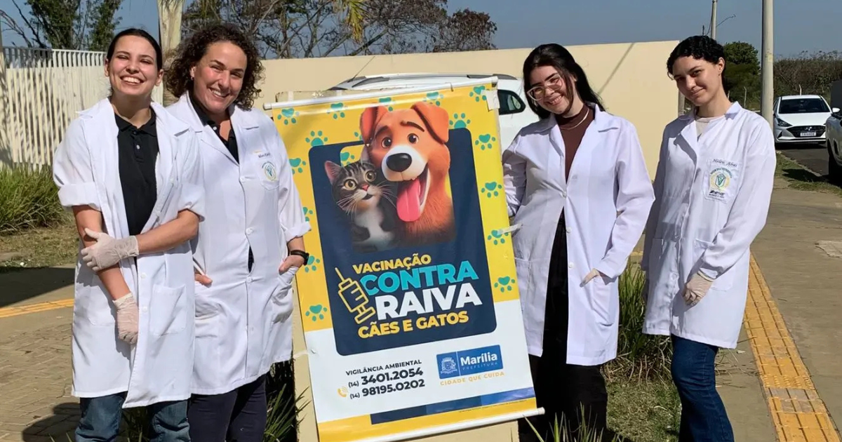 Acadêmicos do curso de Medicina Veterinária da Universidade de Marília (Unimar) seguem atuando ativamente em uma importante ação de extensão, a campanha de vacinação antirrábica promovida pela Secretaria Municipal de Saúde. A atividade, realizada mensalmente nos bairros da cidade, vai além da proteção dos animais, é uma medida fundamental para a saúde pública.