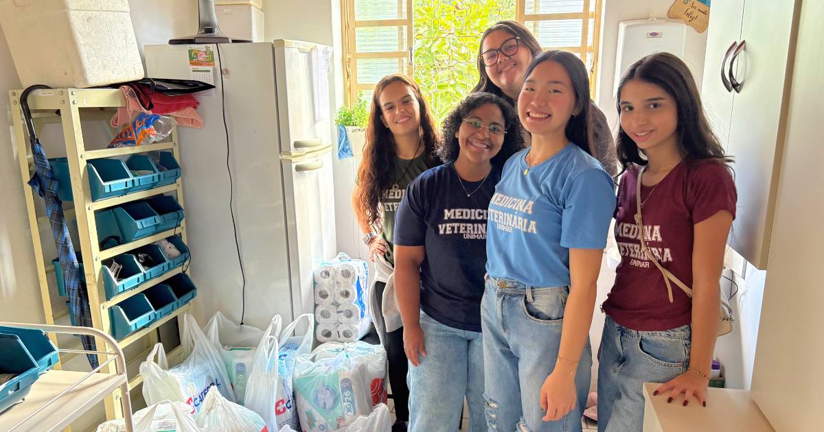 No Lar São Vicente de Paulo, os futuros médicos veterinários promoveram uma tarde de conversa e interação com os idosos, levando alegria, jogos e um gesto de solidariedade, com a entrega de doações arrecadadas para a instituição, especialmente fraldas geriátricas.