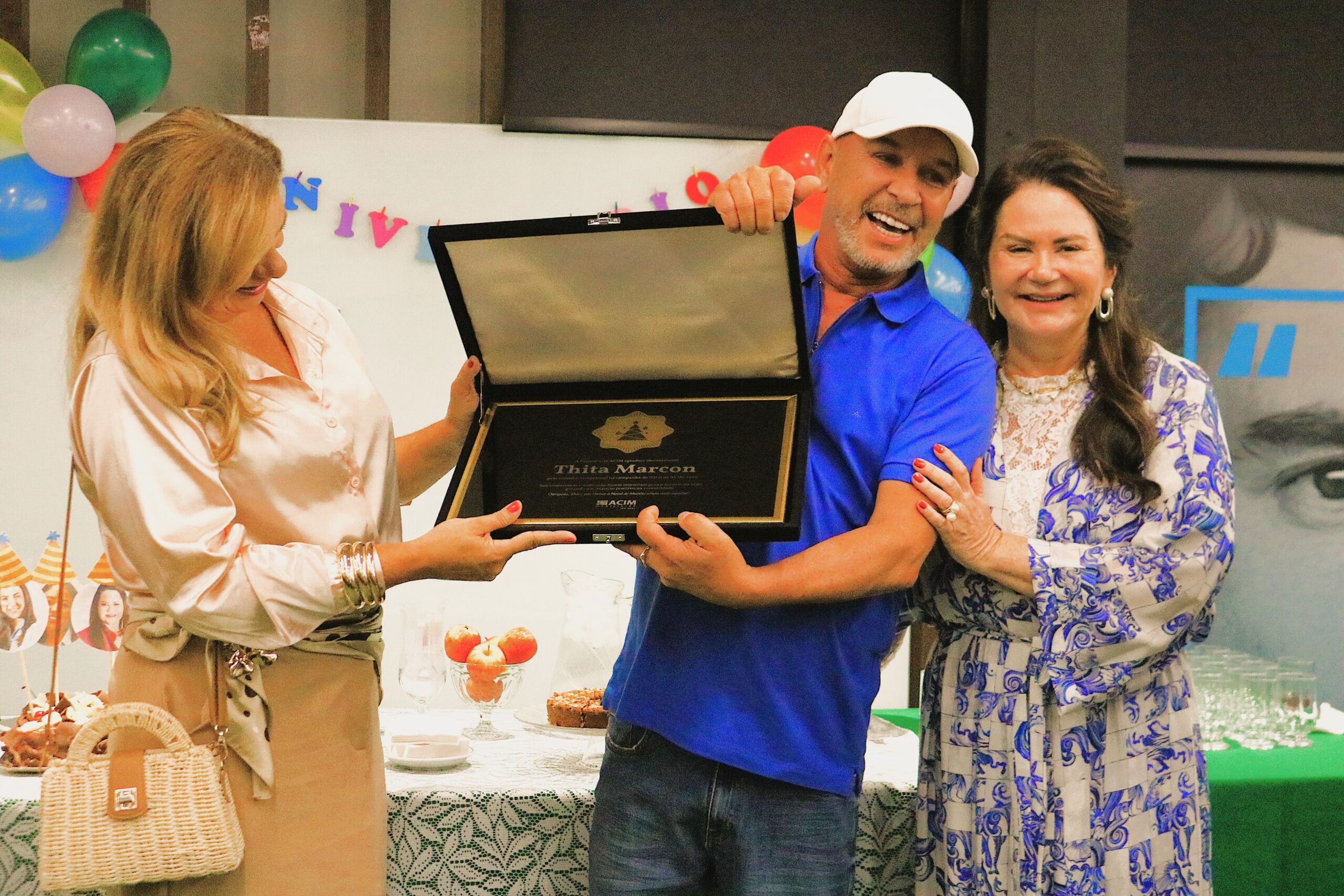 A diretoria da Associação Comercial e de Inovação de Marília homenageou no último dia 27, sexta-feira, quando comemorou os aniversariantes do mês, entre os funcionários, diretores e parceiros, o decorador Thita Marcon, pelo trabalho voluntário realizado no fim do ano passado quando ele foi o responsável pela decoração natalina da entidade, bastante elogiada pelos associados, consumidores e usuários da instituição.