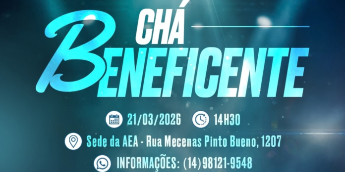 O Chá Beneficente acontece no dia 21 de março, um sábado, às 14h30, na sede da AEA, localizada na rua Mecenas Pinto Bueno, 1207. Para participar, o investimento é de R$ 30,00, além da doação de um pacote de fralda geriátrica (tamanhos G ou GG). Interessados podem obter mais informações e confirmar presença pelo telefone (14) 98121-9548 ou pelo site oficial www.aeamarilia.com.br.