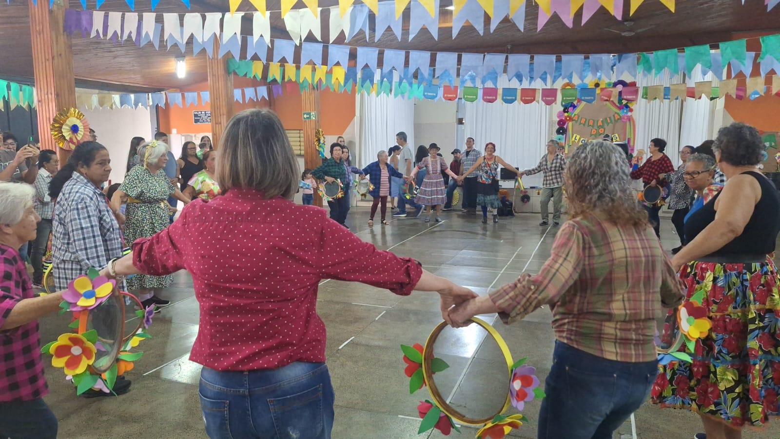 Os idosos do Novo Tempo foram protagonistas nas danças de quadrilha e forró. “O objetivo com os “60+” foi mesmo acrescentar alegria, com um gostinho de “quero mais”, de vida! E todas as nossas apresentações trouxeram mensagens importantes de carinho, respeito, presença e diálogo, fortalecendo os vínculos com filhos, netos e bisnetos aqui presentes nesta festa”, destacou a coordenadora do Novo Tempo, Denise Salante.