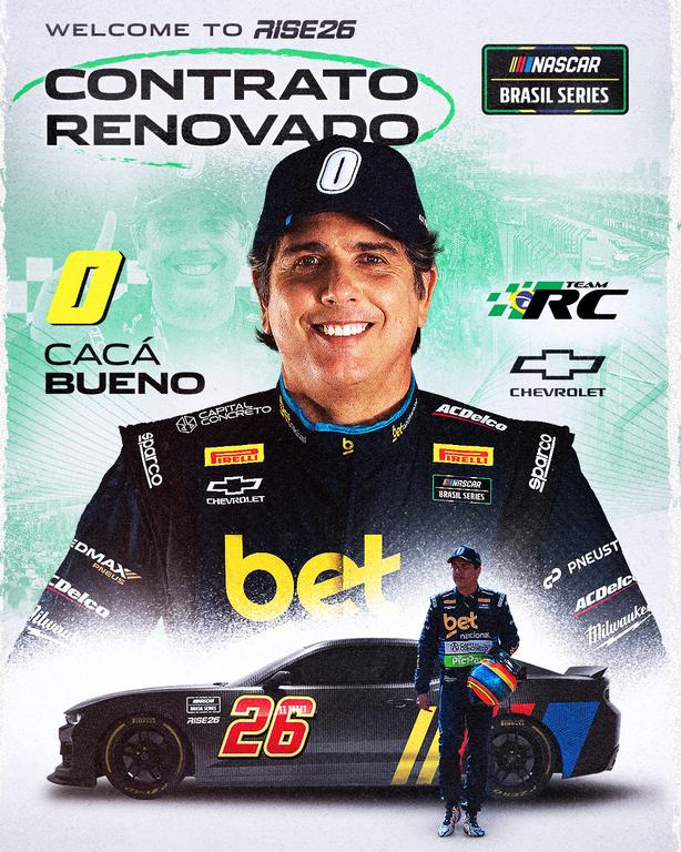 A temporada 2026 da NASCAR Brasil Series terá novamente um dos maiores nomes do automobilismo nacional no grid. O multicampeão Cacá Bueno renovou com a Team RC e dará continuidade ao projeto iniciado em sua temporada de estreia na categoria.