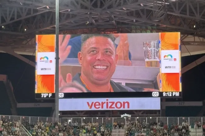 Nesta quinta-feira (26), a belarussa Aryna Sabalenka garantiu vaga na final do Miami Open ao derrotar a cazaque Elena Rybakina por 2 sets a 0, com parciais de 6/4 e 6/3. O duelo contou com a presença de um torcedor ilustre: Ronaldo Fenômeno.