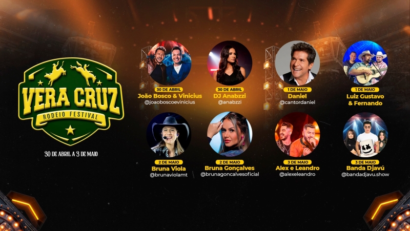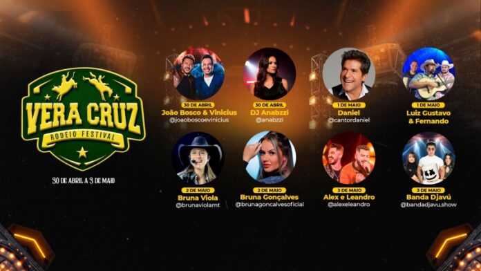 De 30 de abril a 3 de maio, a encantadora cidade de Vera Cruz, de pouco mais de 10 mil habitantes, será  cenário de um dos mais aguardados eventos culturais da região: a 4ª edição do Vera Cruz Rodeio Festival. Em uma celebração que promete muita emoção e tradição, o festival traz uma programação diversificada, reunindo grandes nomes da música nacional, competições de montarias e a já famosa Prova dos Três Tambores, que acontece no último dia do evento.