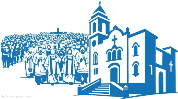 O logotipo do Jubileu e do Primeiro Sínodo Diocesano carrega elementos simbólicos profundos, conforme explicado pelo padre Tiago Barbosa, da Pastoral de Comunicação: