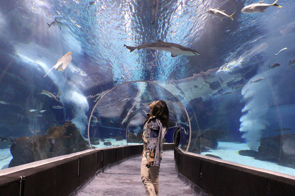 A atração principal, que já se configura como ícone do local, é o túnel subaquático, onde os visitantes têm o privilégio de caminhar sob cardumes policromáticos e observar o comportamento de animais raros a uma distância privilegiada.