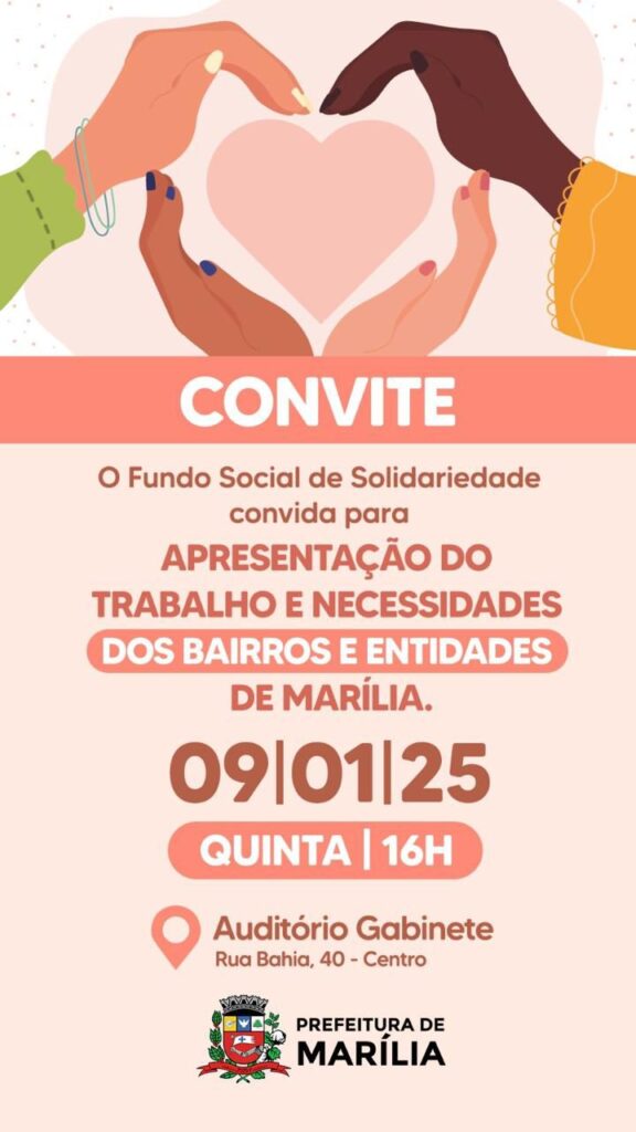 Nesta quinta-feira (9), às 16h, no auditório do gabinete da prefeitura, o Fundo Social promove a sua primeira reunião para apresentação das metas para 2025. “Convidamos a todos para que, juntos, possamos trabalhar para quem mais precisa”, completou Maria Paula Almeida.