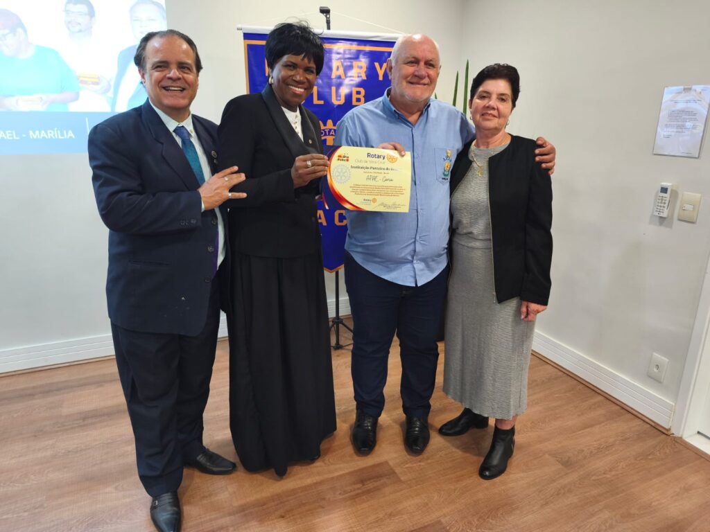 Representantes das Apae’s de Garça, Pompeia e Marília, além de dirigentes do Projeto Amor de Criança, Instituto Mansão Ismael, Asilo Teresa Belluzzo de Vera Cruz, Projeto Takaendô de Vera Cruz, e ao grupo de Educação de Jovens e Adultos (Eja) de Vera Cruz, foram homenageados pelo Rotary Club de Vera Cruz, através do Rotary Club Satélite de Vera Cruz-Integração, no Distrito 4510 do Rotary International, por serem beneficiadas na campanha do McDia Feliz, realizada no dia 23 de agosto, em favor do setor de oncologia pediátrica da Santa Casa de Marília, pelo Instituto Ronald McDonald’s.