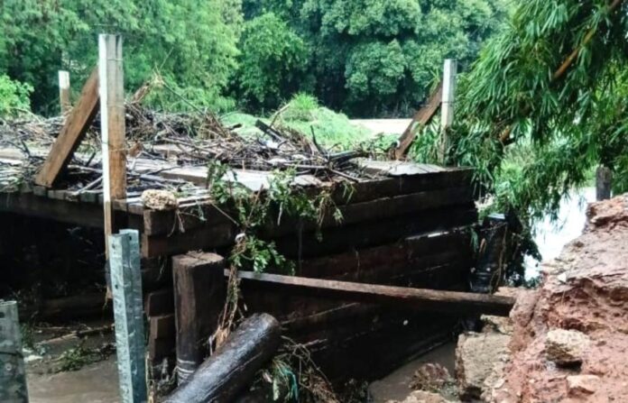 “Estamos com problema na ponte de Dirceu, cuja cabeceira caiu essa noite. Importante destacar que foi um problema na cabeceira apenas, a ponte não caiu. Assim que parar de chover, a equipe da Secretaria de Infraestrutura fará o conserto, pois trata-se de reparo rápido. E uma outra ponte em Dirceu, que dá acesso ao bairro Florida, apresentou problemas, mas a Secretaria de Infraestrutura já está atuando e finalizando as ações para liberar o acesso nesse equipamento. Temos outras pontes menores, uma na estrada do Pombo depois da Igreja Batista, que está com problema na cabeceira também, e que a Secretaria de Infraestrutura fará intervenção”, explicou Leonardo Mascarin.