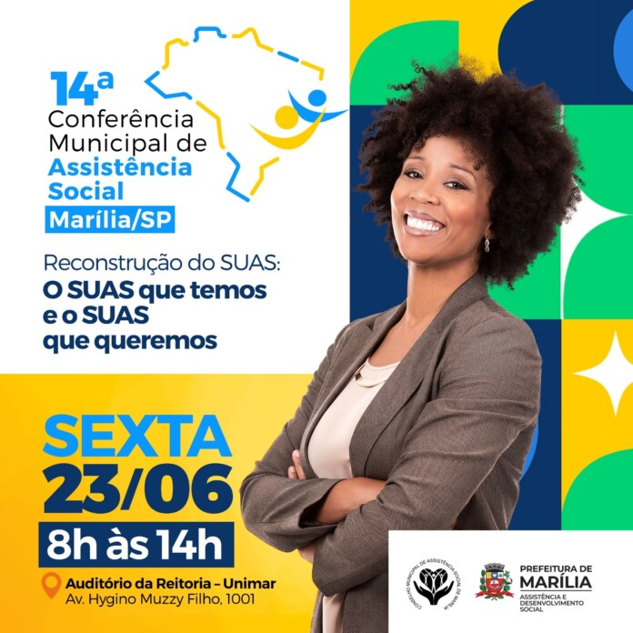 A Prefeitura Municipal de Marília, por meio da Secretaria Municipal de Assistência e Desenvolvimento Social e do Conselho Municipal de Assistência Social (CMAS), prepara a 14ª Conferência Municipal de Assistência Social, programada para acontecer no próximo dia 23 de junho, das 8h às 14 horas, tendo como tema ‘Reconstrução do SUAS: O SUAS que temos e o SUAS que queremos’.