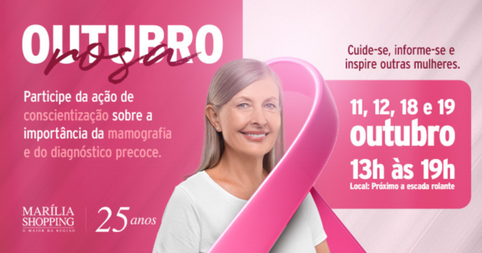 O mês de outubro lembra a importância de cuidar da saúde da mulher e incentivar o diagnóstico precoce do câncer de mama. Pensando nisso, o Marília Shopping se une à comunidade e a instituições de saúde para promover ações de conscientização sobre o tema.