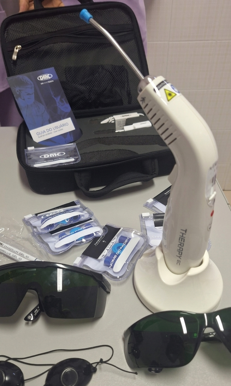 O modelo Therapy EC (fabricante DMC) permite a aplicação combinada de laser vermelho e infravermelho. Essas luzes alcançam profundidades distintas nos tecidos, tratando a lesão diretamente enquanto promovem o alívio imediato da dor causada por fissuras, cortes ou feridas cirúrgicas.