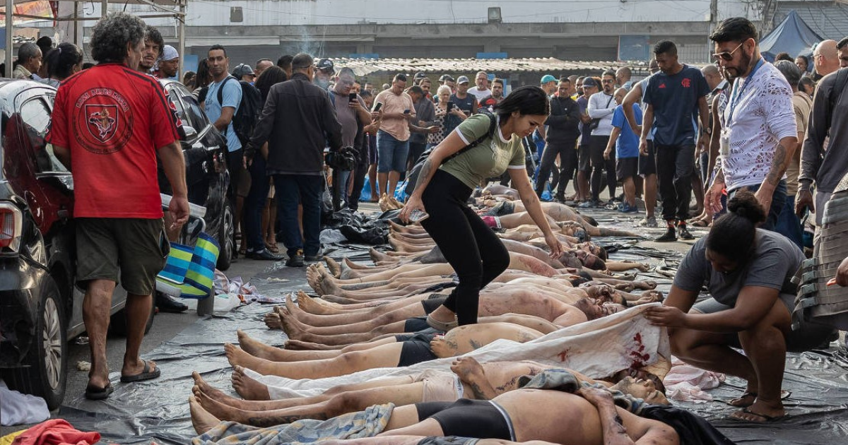 Cerca de 50 corpos foram retirados de uma área de mata do Complexo da Penha por moradores, após a operação realizada pelas forças de segurança do estado, nessa terça-feira (28). Os corpos foram reunidos na Praça São Lucas, no centro da comunidade, e de acordo com os moradores, não fazem parte da contagem oficial de 64 mortos – 60 suspeitos e 4 policiais. A Polícia Militar foi procurada, mas ainda não se pronunciou.