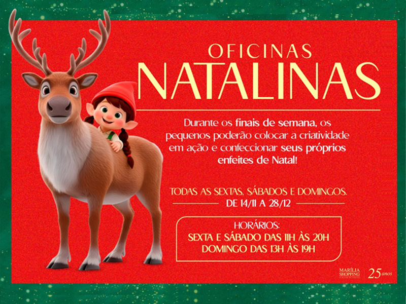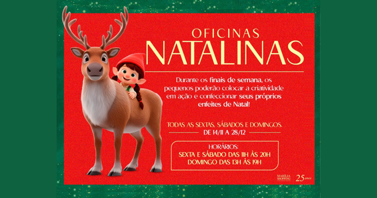 O Marília Shopping abriu oficialmente sua programação especial de Natal e, entre as atrações que prometem encantar as famílias, estão as Oficinas Natalinas, criadas para estimular a criatividade das crianças e proporcionar momentos de diversão durante todo o período festivo.