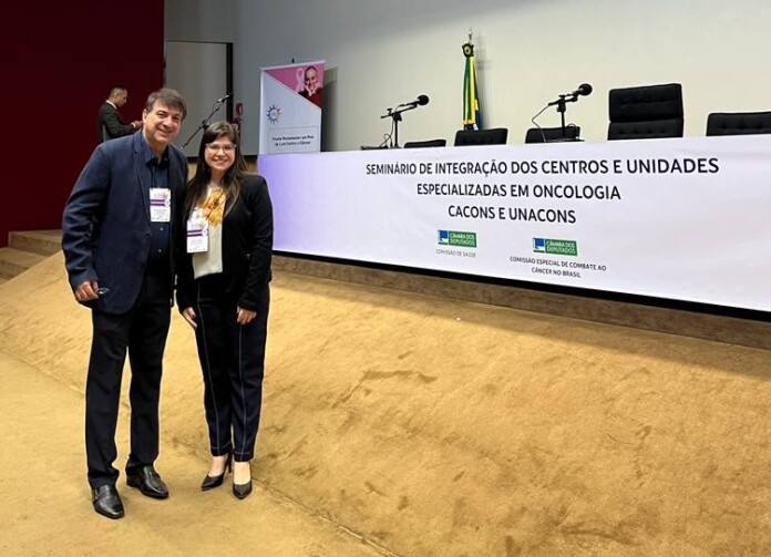 O coordenador administrativo do Centro de Oncologia da Santa Casa de Marília, Elton Turola e a médica oncologista pediátrica, Renata Trinca, estiveram na capital nacional para participarem da discussão sobre as novidades no que diz respeito ao diagnóstico, tratamento e incorporação de novas tecnologias ao SUS, além de políticas e financiamento direcionados para a oncologia e radioterapia no País.
