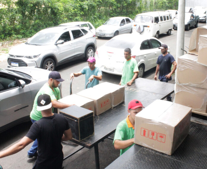 Servidores municipais de 7 Secretarias Municipais iniciaram nesta terça-feira, dia 5 de dezembro de 2023, a retirada das cestas básicas no estádio varzeano Pedro Sola. Para auxiliar o fluxo do trânsito na rua Nicolino Roseli, agentes de trânsito da Emdurb (Empresa de Mobilidade Urbana) foram acionados e garantiram a segurança durante a movimentação dos auxiliares de entrega e dos funcionários públicos.