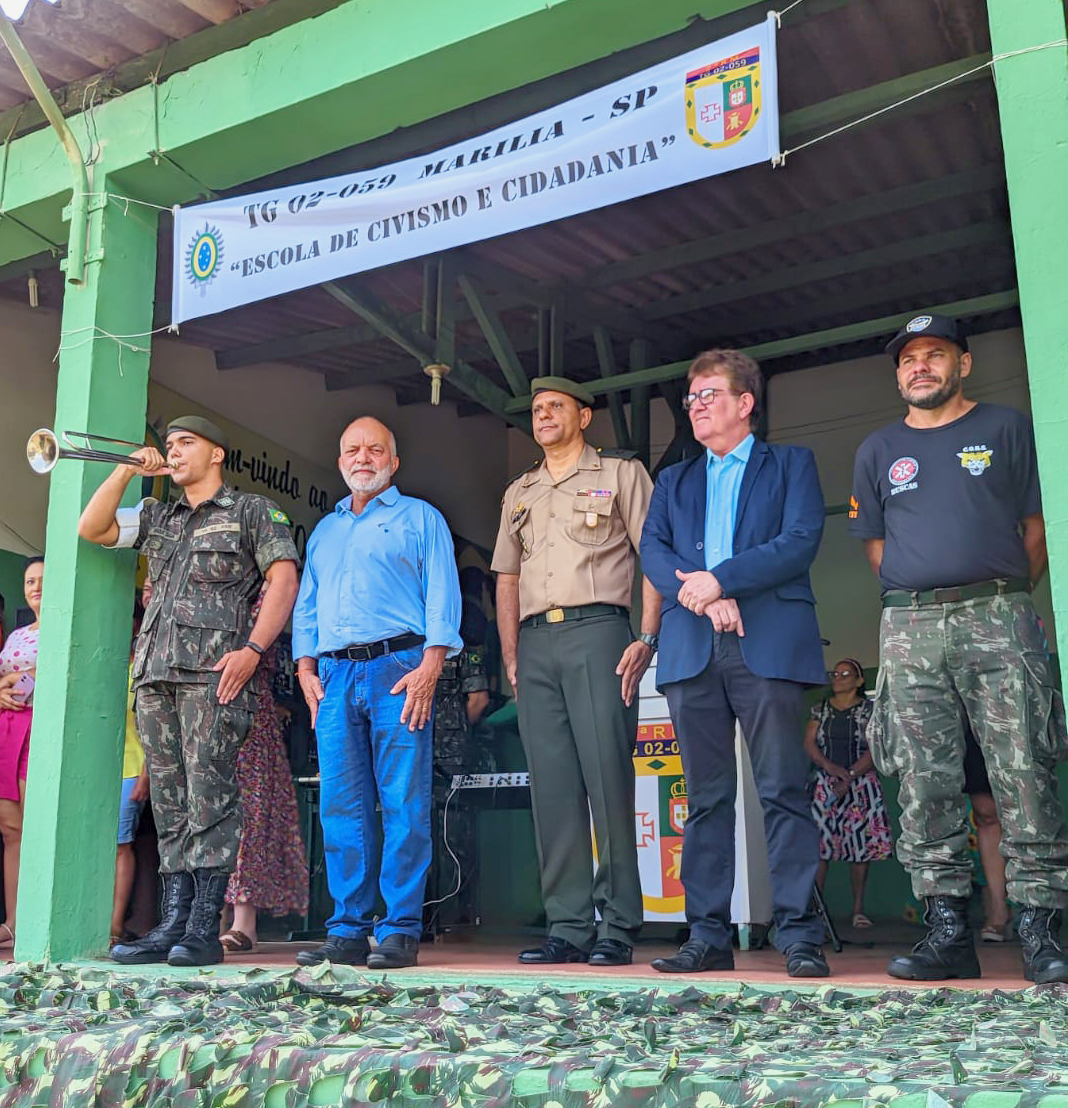 O encerramento do ano de instrução foi comandado pelo subtenente Silas José da Silva. Vice-prefeito Cícero Carlos da Silva, o Cícero do Ceasa, representou o Executivo de Marília