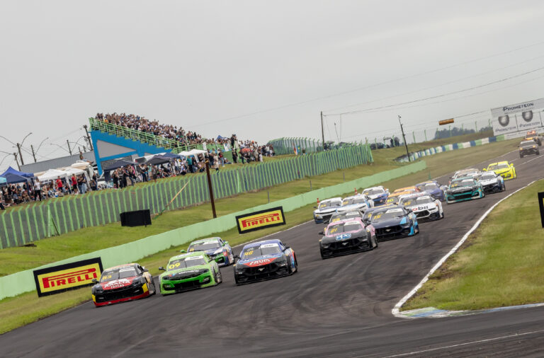 Vitor Genz largou na frente depois do resultado conquistado na corrida classificatória Sprint Race de sábado, mas segurar a ponta virou trabalho hercúleo. Gabriel Casagrande (Chevrolet Camaro #83/AMattheis Vogel), Thiago Camilo (Ford Mustang #21, Full Time), Nicolas Costa (Chevrolet Camaro #69, AMattheis Vogel), Arthur Gama (Chevrolet Camaro #9, Cavaleiro Sports) e Cacá Bueno (Chevrolet Camaro #0, Team RC) transformaram cada volta em disputa aberta. Não teve respiro. A liderança trocou de dono, mudou de endereço e ficou cercada por todos os lados.
